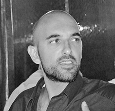 Je suis un écrivain italien, auteur de la bande dessinée Skin publiée par « BD Edizioni », et de Eveil en pleine mer, publiée par les Editions Félès. J’ai publié en Italie le livre Sterzo Righello Timpano et j’écris des articles satyriques d’art sur mon site cripticart.com.