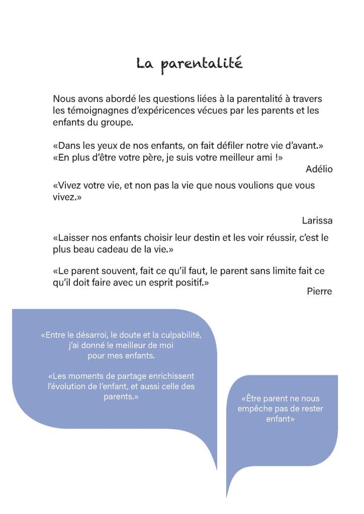 les participants peuvent s’exprimer librement sur leurs récits de vie,
